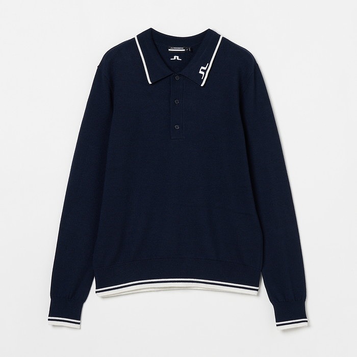 柔らかいカシミヤウール混のニットシャツ。クラシックな3ボタンの前立てと裾・袖口・衿端はコントラストカラーのラインが入ったデザイン。前左衿と後ろ衿下にブリッジマークがあります。通気性、臭気を抑制してくれる機能特性があります。