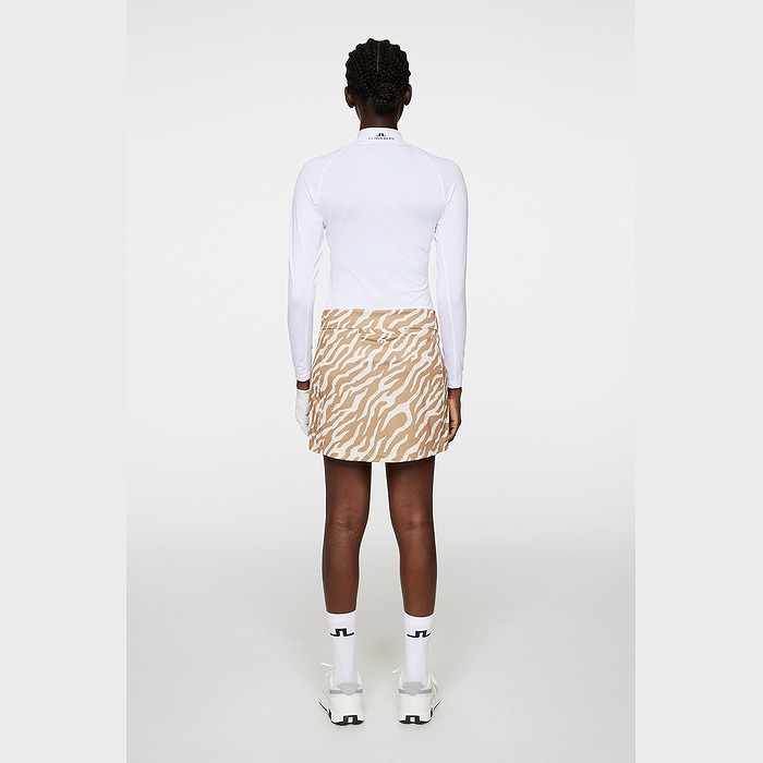 シーズンプリントを施したTXジャージで作られた毎年人気のショート丈のスカート。後ろにはジッパー付きポケットとブリッジロゴの刺繍が施され、機能性も抜群。内側にはショーツが付いており、テクニカル4ウェイストレッチ素材を使用し、吸湿性、速乾性も備えています。快適なゴルフライフをサポートする一着です。生地はエコテックス認証済みとなります。