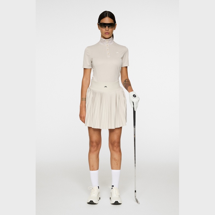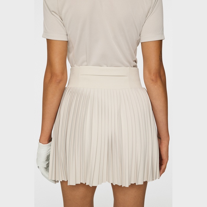TXジャージで作られたマイクロプリーツのスカートは、フェミニンな印象にアップデート。しっかりとした伸縮性のあるウエストバンドと背面にポケットが付いています。フロントにはシリコンのブリッジロゴが付きます。吸湿性、速乾性に優れた素材を使用しているため、快適な着心地を実現。生地はエコテックス認定済となります。インナーショーツ付き。