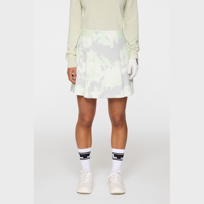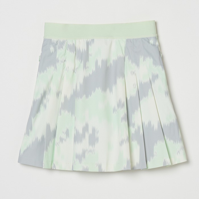 人気のマイクロハイストレッチで作られたシーズンプリントのプリーツスカート。たっぷりとしたナイフプリーツが動きやすさとフレア感を演出します。ウエストは伸縮性のあるゴムバンドで快適なフィット感を実現。付属のインナーショーツ付き。速乾性、4WAYストレッチ、撥水の素材特性があります。撥水加工は環境に配慮したPFCフリー加工で、ブルーサイン、GRS(Global Recycled Standard)、エコテックス認証済みとなります。素