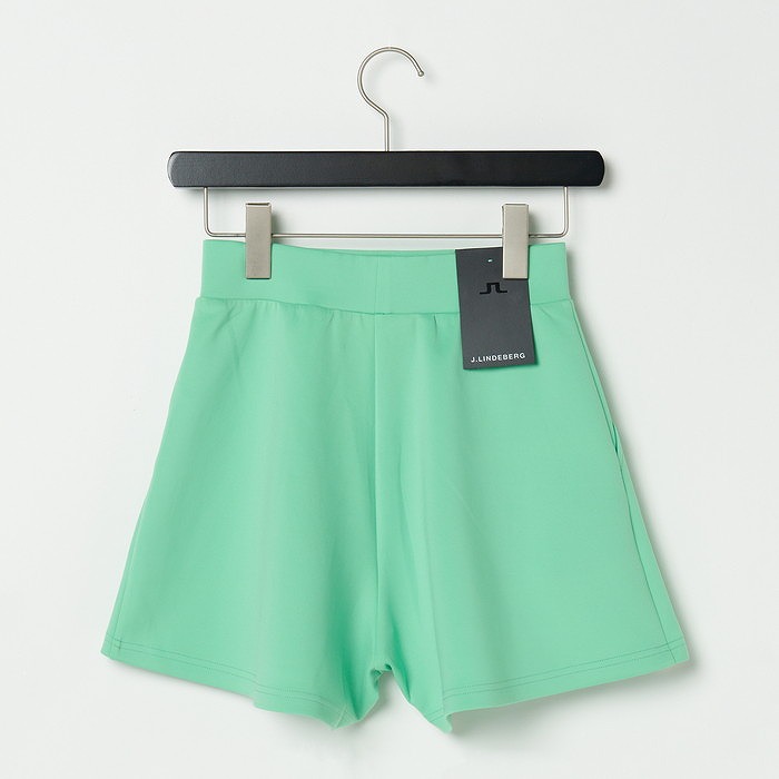 ハイウエストのゴルフショーツ。脚は少しフレアになっています。ウェストバンドは伸縮性があります。速乾性、ソフトな風合いでストレッチもあり、生地はエコテックス認証済みとなります。