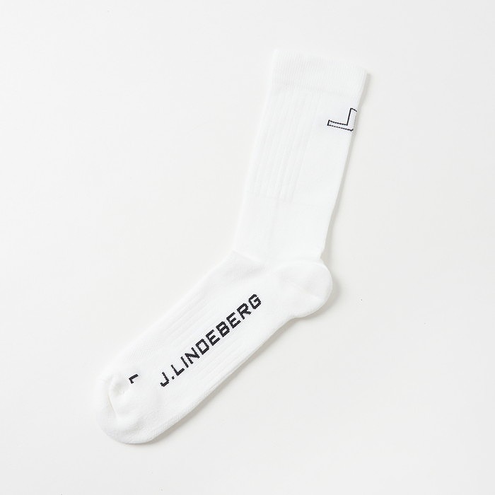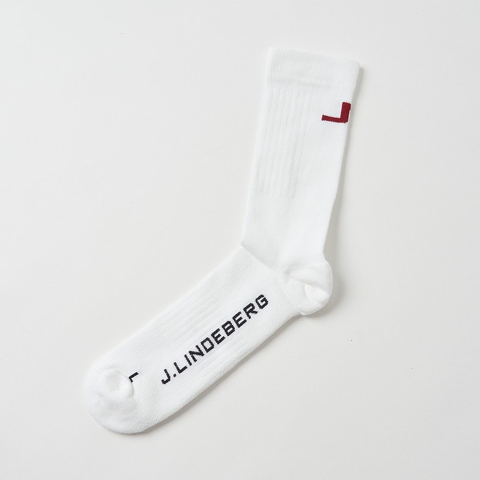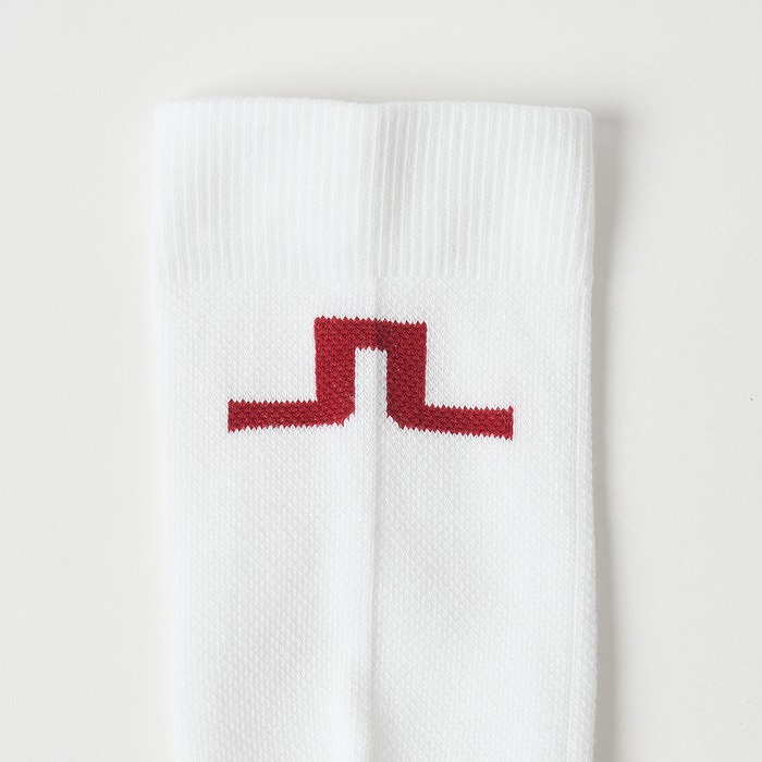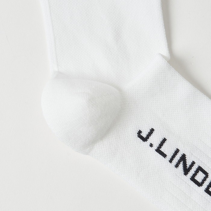 コントラストカラーのジャガードでブリッジマークをデザインしたレギュラー丈のソックスです。足の甲をメッシュニットした快適で速乾性のある仕様となっています。サイドにJ.LINDEBERGのジャガードロゴがあります。