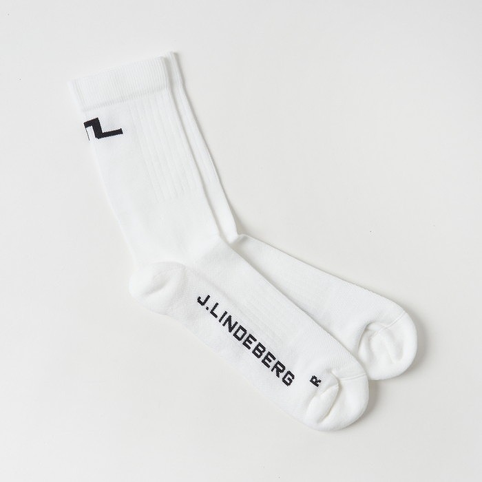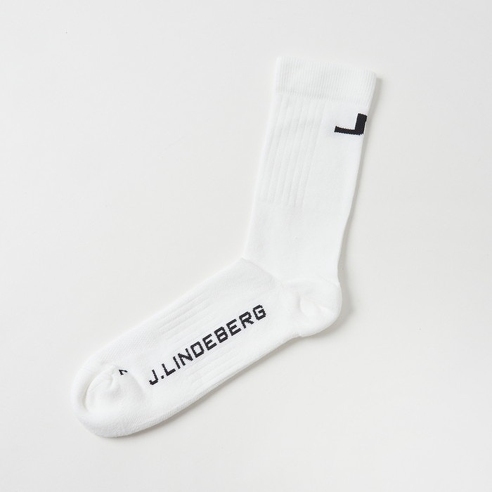 コントラストカラーのジャガードでブリッジマークをデザインしたレギュラー丈のソックスです。足の甲をメッシュニットした快適で速乾性のある仕様となっています。サイドにJ.LINDEBERGのジャガードロゴがあります。