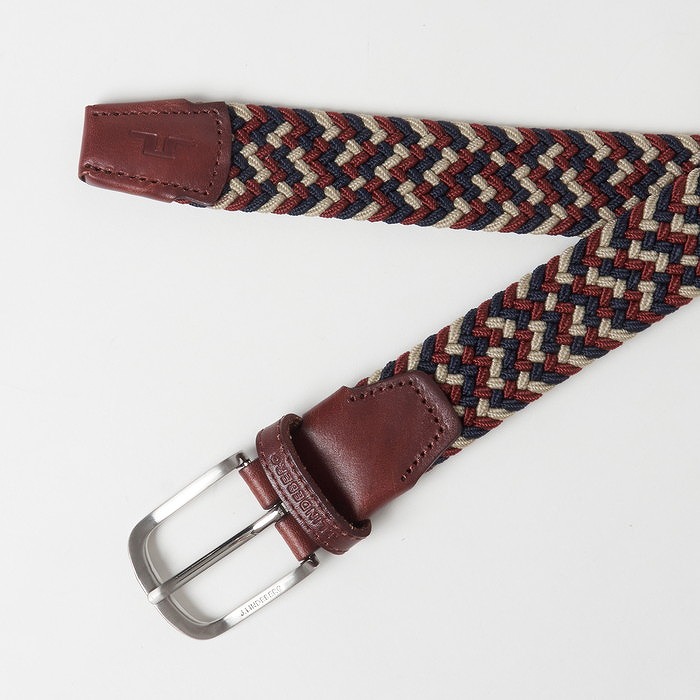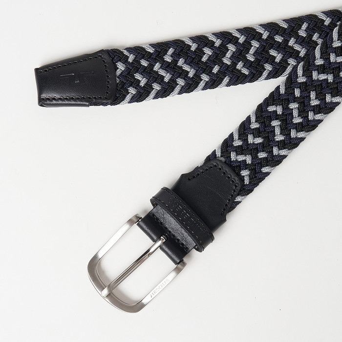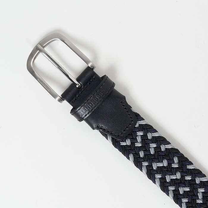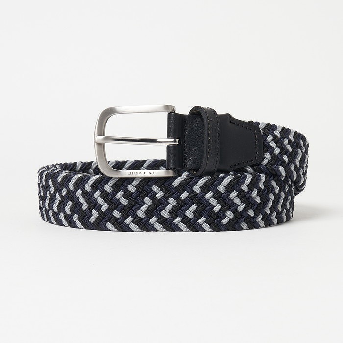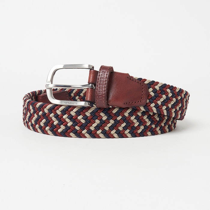 伸縮性に優れた三色編み組ベルト。ベルト幅35mm。ロゴ入りメタルバックル。ベルトの先端とベルトループには、ベジタブルタンニン鞣しのレザーを使用。イタリア製。表示サイズよりも1サイズUPがおすすめです。