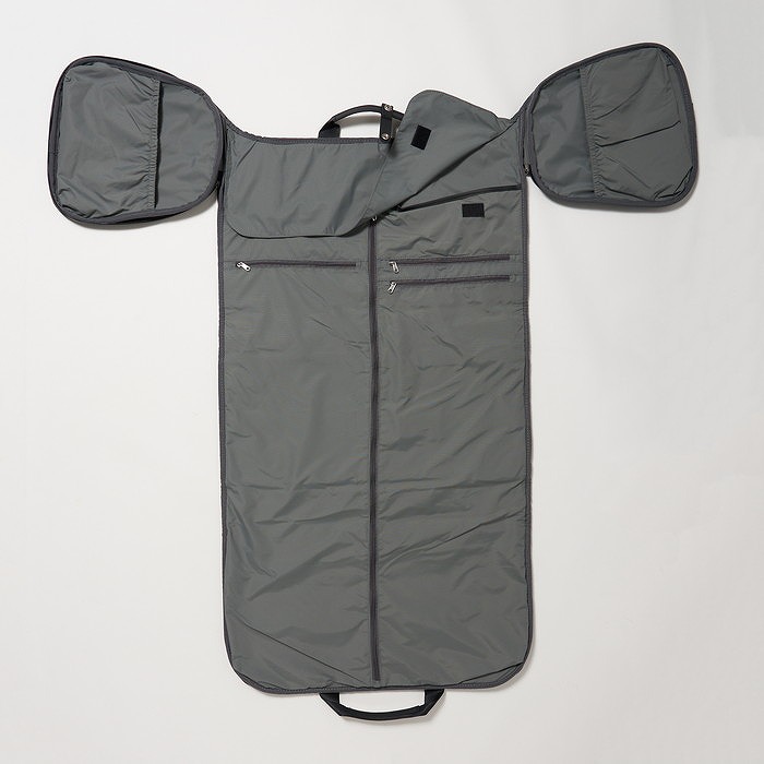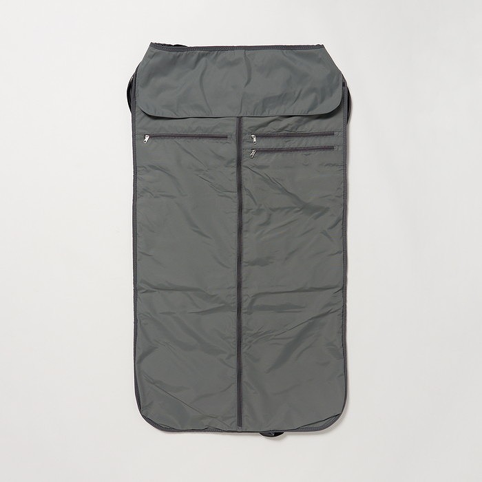 【ガーメントバッグ⇒スーツやドレスなどの衣服をハンガーにつるした状態で持ち運べる折り畳み式バッグ】