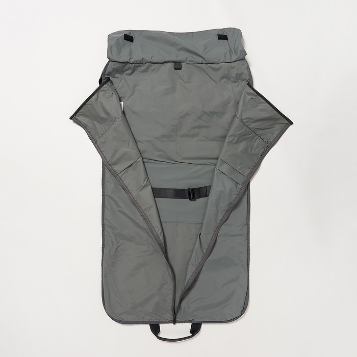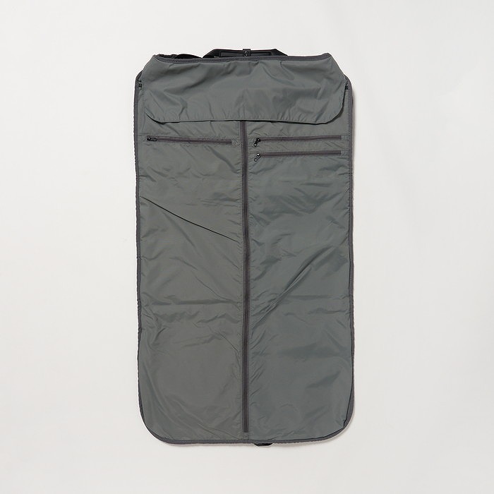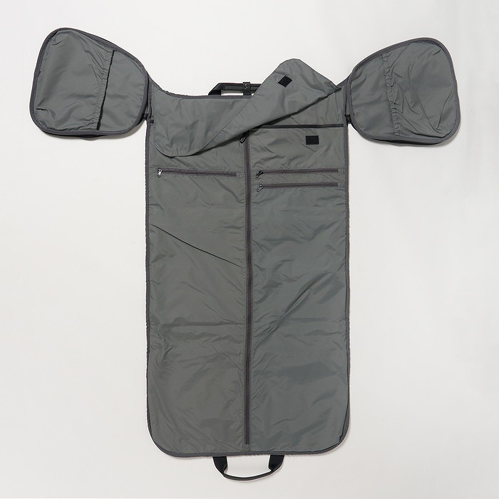【ガーメントバッグ⇒スーツやドレスなどの衣服をハンガーにつるした状態で持ち運べる折り畳み式バッグ】