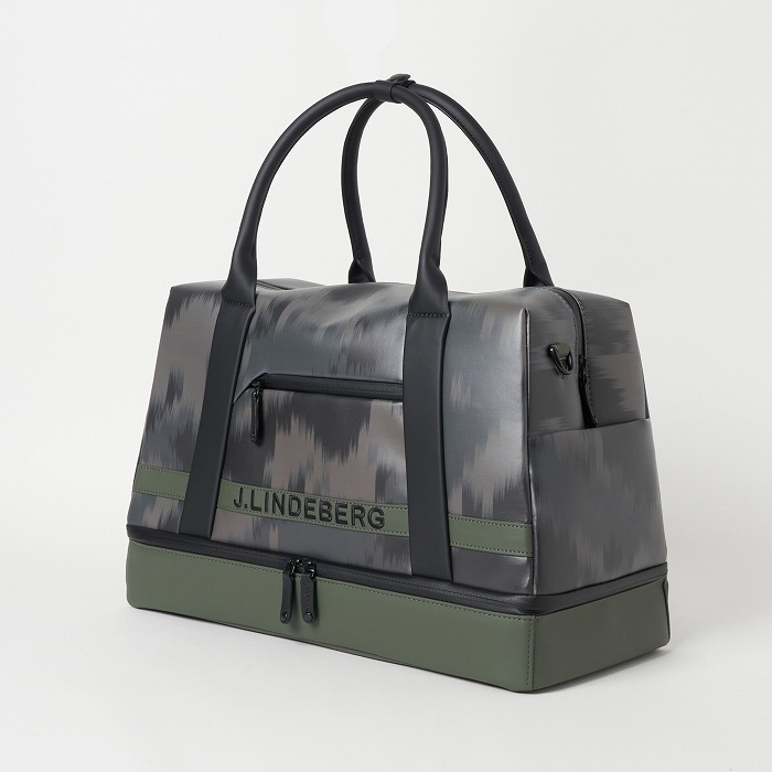 今シーズンのグラフィックがプリントされた耐久性、耐摩耗性、耐熱性に優れた合成皮革を使用したボストンバックです。バッグには防水ジッパーが付いているので、簡単に開いてゴルフシューズを入れることができます。容量:約49L。