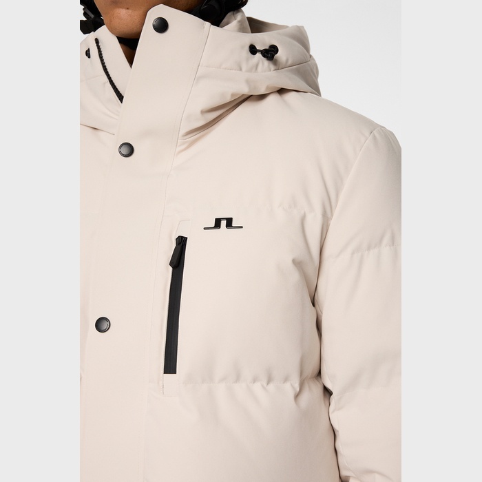 街ではスタイリッシュに、ゲレンデでは暖かく過ごせるプレミアムダウンパーカー。防水性に優れた2レイヤーのラミネート素材、中綿にはプレミアムダウンを使用。前立てとポケットフラップはラミネート加工を施し防風性を備えています。ダウン入りの襟とフードで調整可能なドローコード付き。ハンドポケットの内側にはフリースを使用し、左胸にはブリッジロゴが付きます。耐水圧20000mm、透湿性20000g/m2・24h。撥水加工は環境に配慮したPFCフリー加工で、GRS(Global Recycled Standard)、エコテックス認証済みとなります。