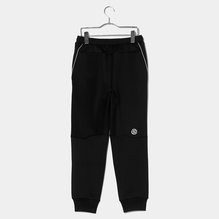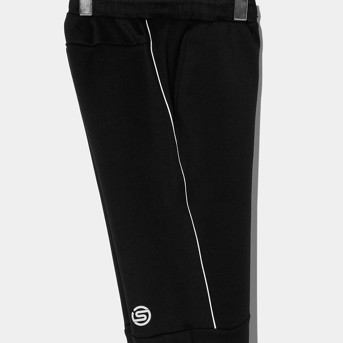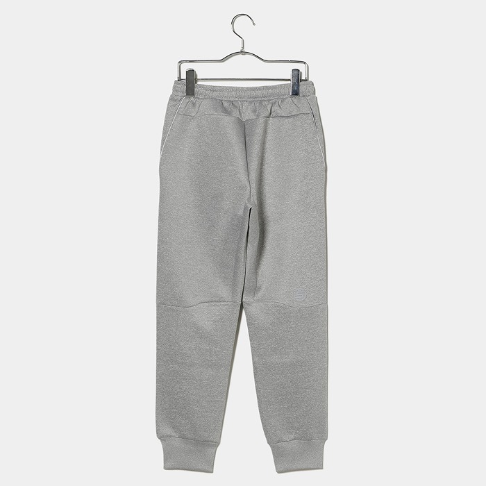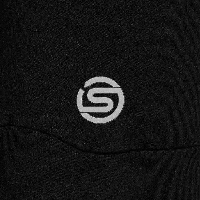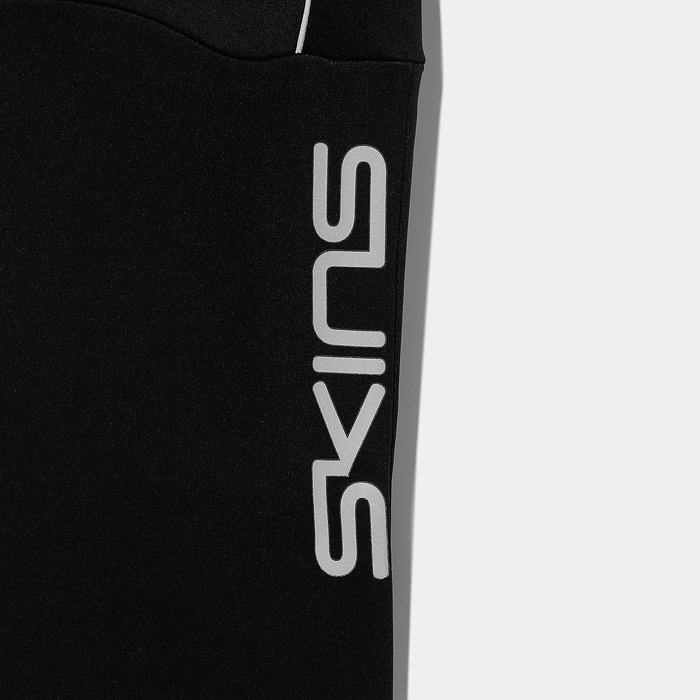 フューチャー感ある素材でシンプル見えするトレーニングパンツです。カッティングにこだわって居り、後腰部分から膝上に向かって再帰反射のパイピングが斜めに切り替えています。左裾部分のSマーク、左足裾部分の大き目のSKINSロゴは再帰反射プリントとなって居り、全体的に夜間の移動やトレーニングでの視認性に特化されたトレーニングロングパンツとなって居ます。