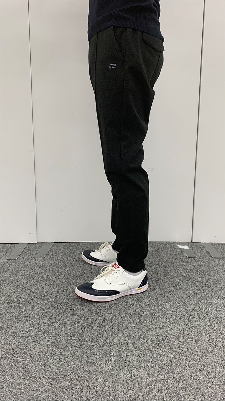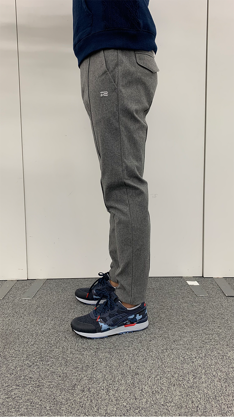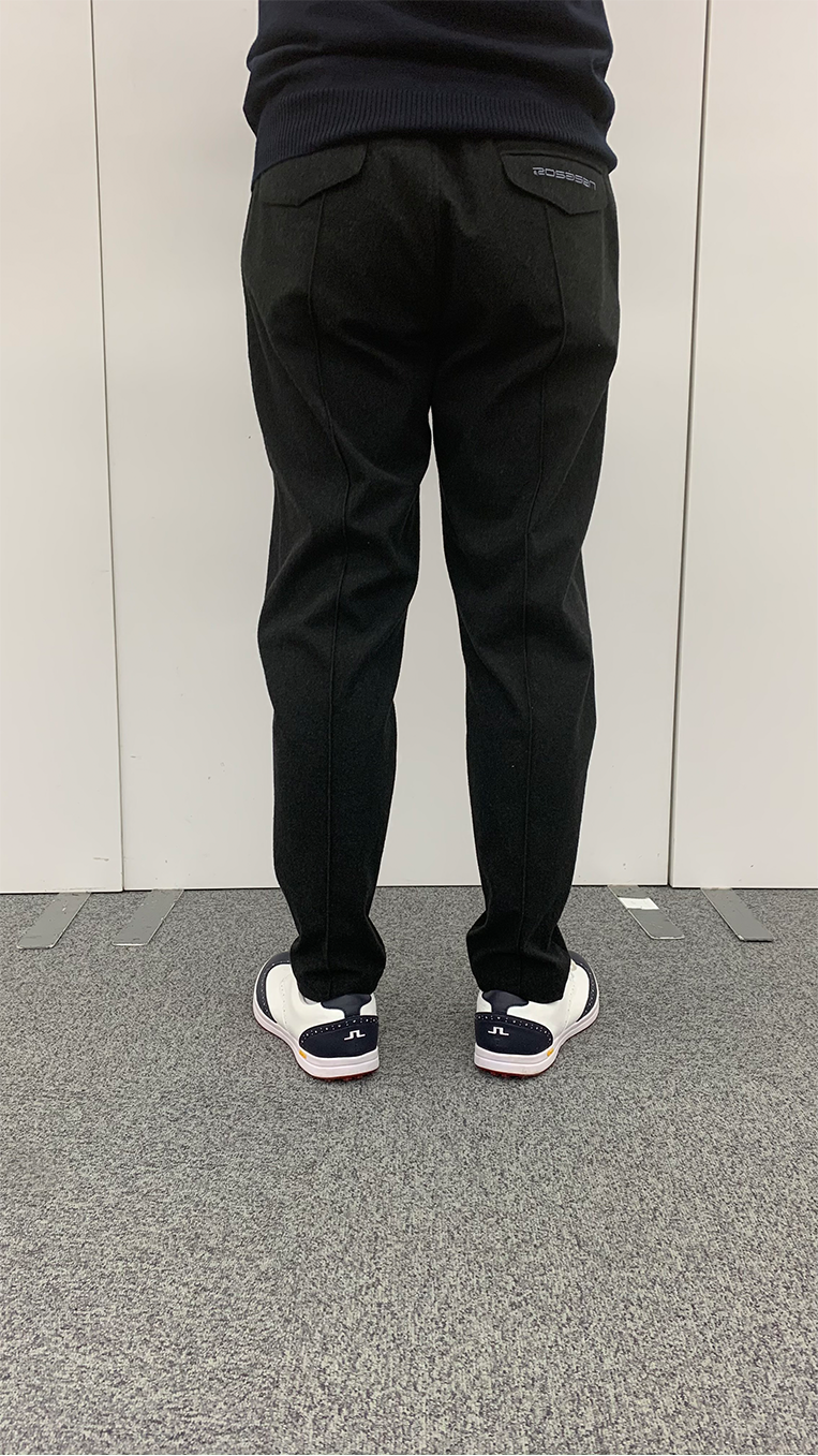 ウエストが少し緩いが、ふくらはぎのサイズ感的にはベストサイズ。
