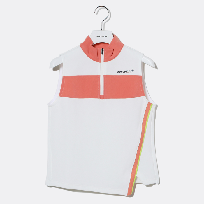 フロントに斜めに大胆な切替ラインが特徴のノースリーブとスカートのセットアップ。