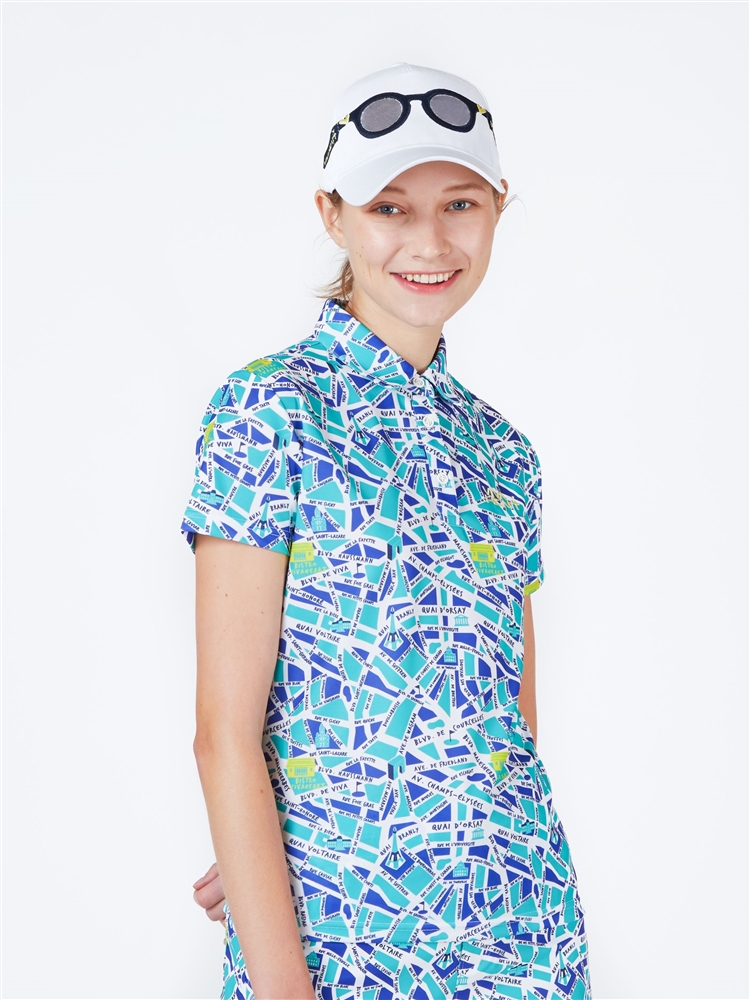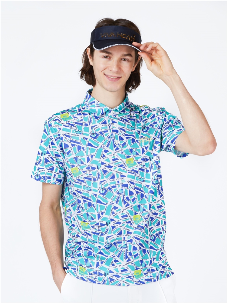 UVカット Map-プリント フェイスカバー付半袖シャツ