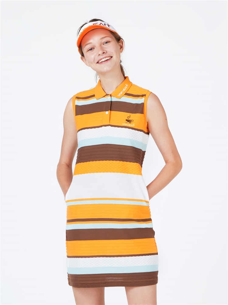 VIVA HEARTらしいポップな色遣いが特徴のノースリーブのポロワンピや