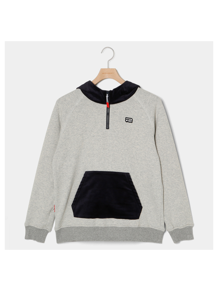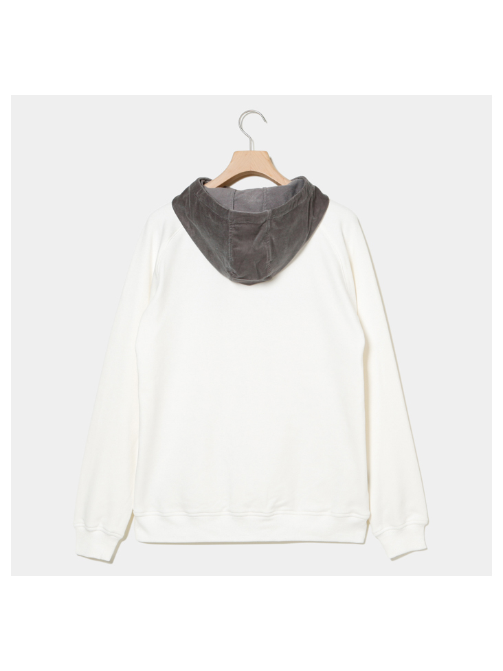 ジョグコーデュロイ素材と裏起毛スウェットを合わせたパーカーは、