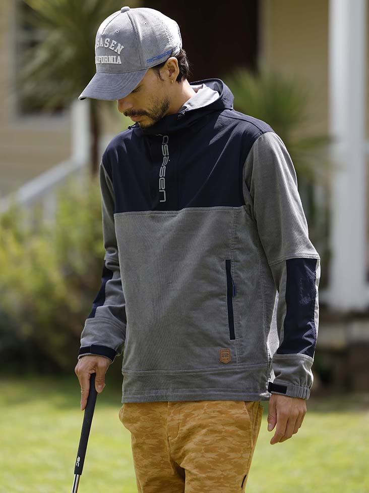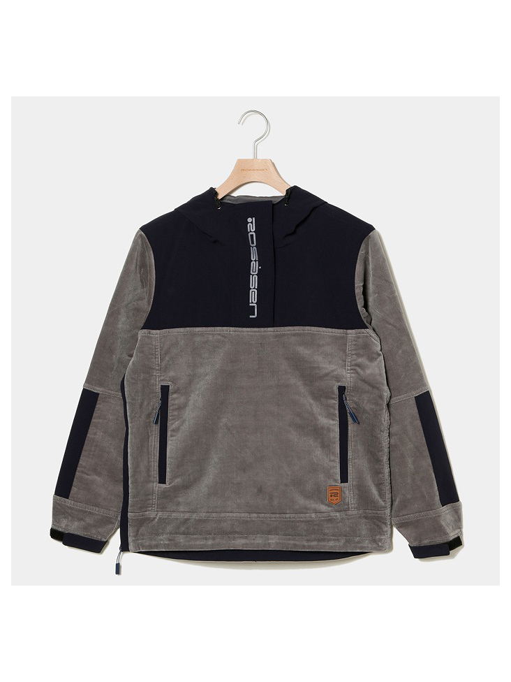 ジョグコーデュロイ素材とナイロンを合わせたアノラックパーカーは、