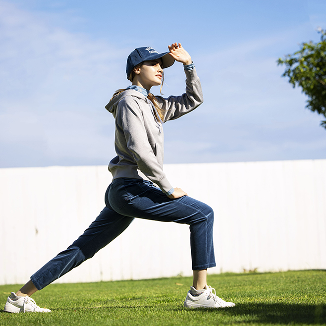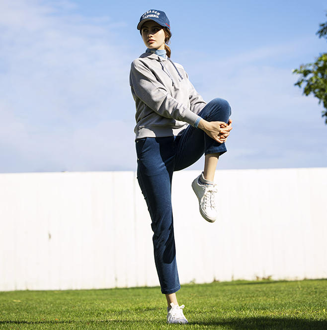 スウェットのような縦横に伸びるストレッチ性を加えて、着心地をアップ。
