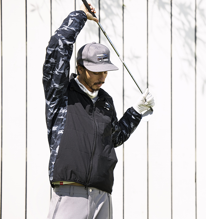 しっかり防寒しながら、プレー中に 着脱の手間もなく快適です。