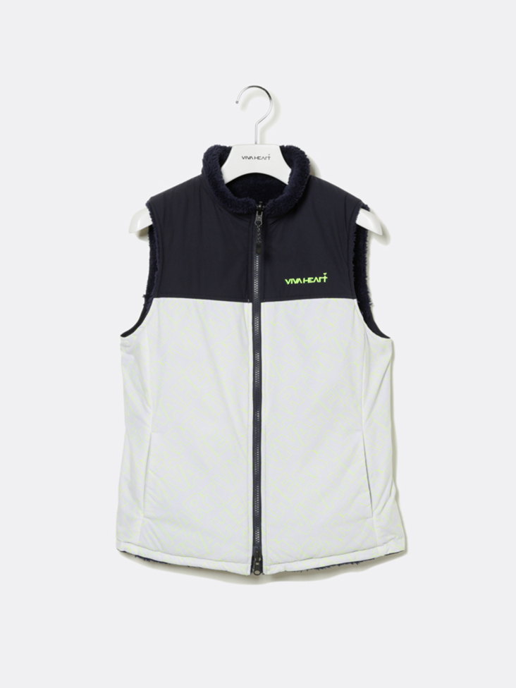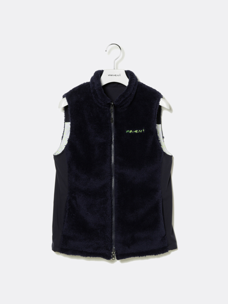 VIVA HEART(ビバハート)フリースxタフタ リバーシブルZIPベスト