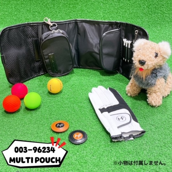 ボールやティー、マーカーなどラウンドに必要な小物がひとまとめにでき取り外し可能なボールケース付きのポーチです。