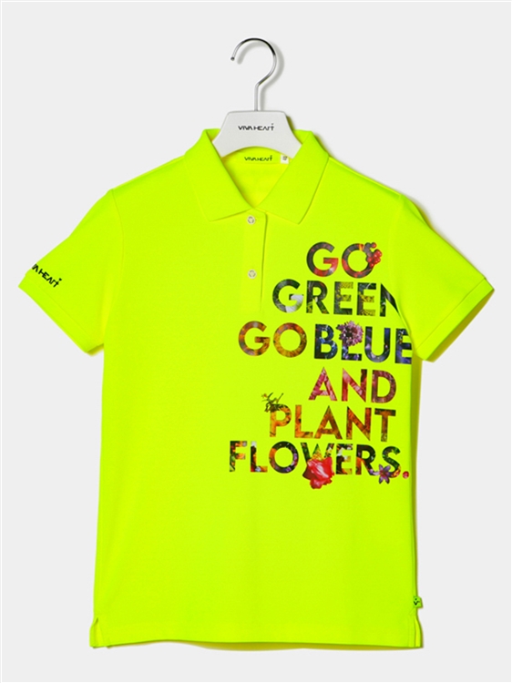 トップス: VIVA HEART(ビバハート)plantica ゼロアクアメッセージ半袖ポロシャツ 012-26341-032 ¥14,300   カラー:イエロー