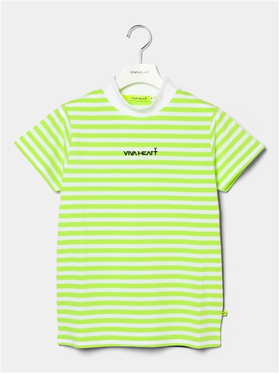 トップス: VIVA HEART(ビバハート)ワッフルボーダー半袖モックネック 012-26344-032 ¥11,000    カラー:イエロー