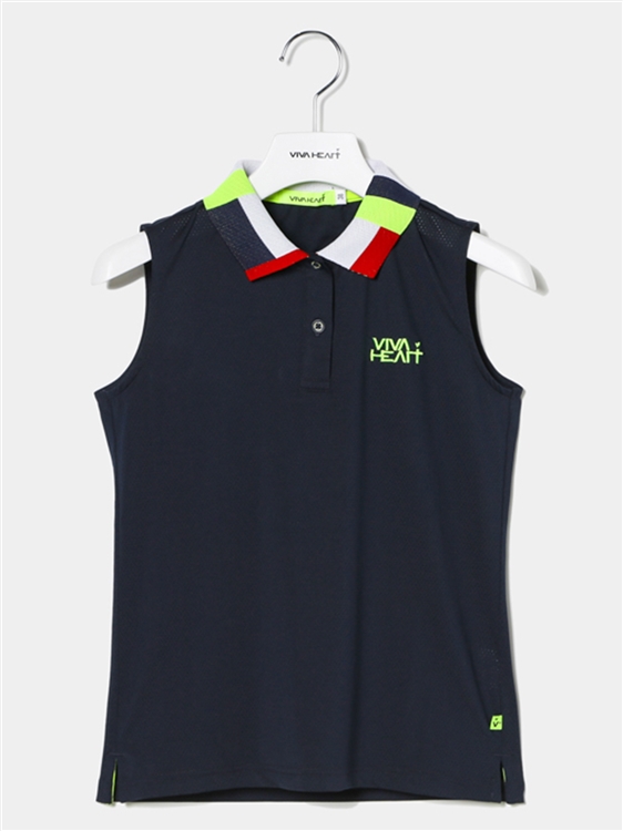トップス: VIVA HEART(ビバハート)ストレッチメッシュノースリーブポロシャツ 012-26471-098 ¥10,780   カラー:ネイビー