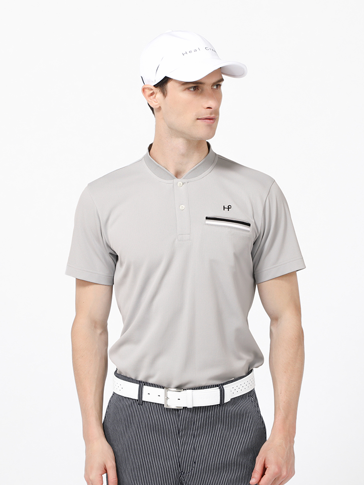 新しいピケ素材のジップアップシャツ。シルエットはレギュラーフィット。