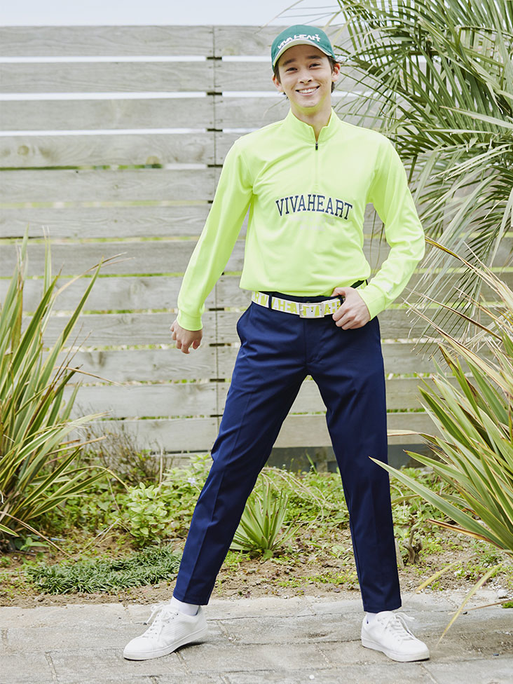 きれいめテーパードシルエットのパンツはグリーン上でもひと際目を惹きます!