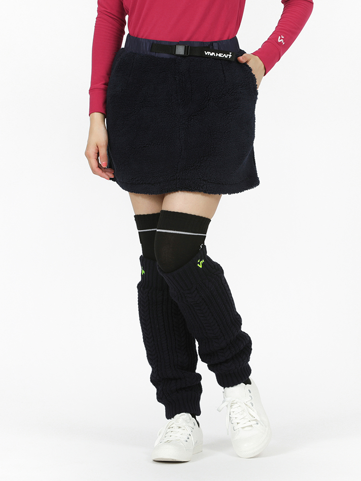 見た目も暖かで肌触りもふわふわなスカートを組み合わせたスタイリング。