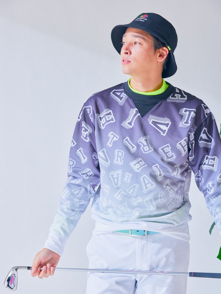 透明感のあるパステルカラーのグラデトレーナーがメインのスタイリング