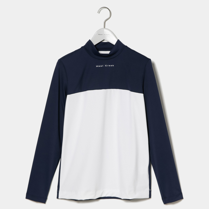 トップス: SALAKALA モックネック長袖シャツ 002-28211-098 ¥19,800(税込) カラー:ネイビー
