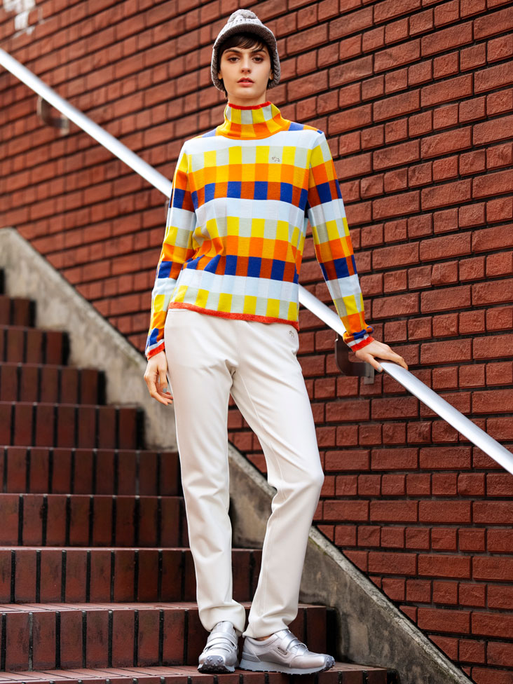 毎年人気の起毛素材を使用し、ソフトで滑らかな肌触りと、秋冬のラウンドに欠かせない暖かさを兼ね備えています。今季は体のラインを拾いにくいややしっかりめの素材を採用。動きやすさと美しいシルエットを両立したテーパードラインに、脚をすっきり見せるクリーズ入りのベーシックデザインです。カラーは上品なグレージュ、シックなチャコールに加え、白黒の千鳥格子、茶系のグレンチェックと、コーディネートに取り入れやすい全4色展開。トラッド感のあるデザインで、オンでもオフでも着回し可能なアイテムです。