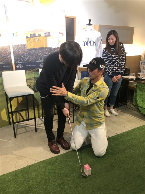 ロサーセンの契約プロの植田希実子プロも当日遊びに来てくれて、事前に横田プロの指導のもと、Box-Cup-In-Golf を練習。