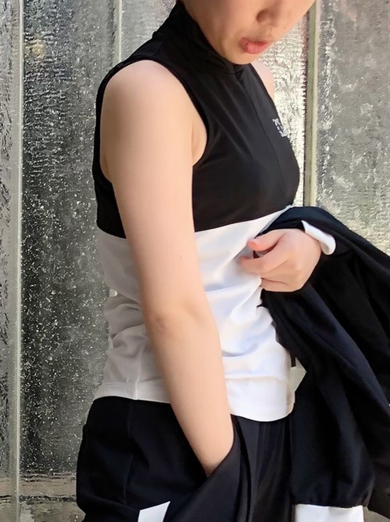 アームラインのシルエットが絶妙な袖無しプルオーバーは、着心地が良く快適なUVボレロと同素材を使用。