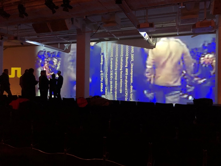 AMはアジア各国とのスモールミーティングとレストランでのランチにつづき、PMよりカンファレンスがいよいよスタートです。プレゼンテーション会場を入ると、ところどころでモダンアートっぽいインスタレーションもあり、コレクションへの期待感が盛り上がっていきます。そして、壁一面(360度!!)にイントロダクションとして、迫力あるイメージムービーが流され、プレゼンテーションがいよいよスタートです!