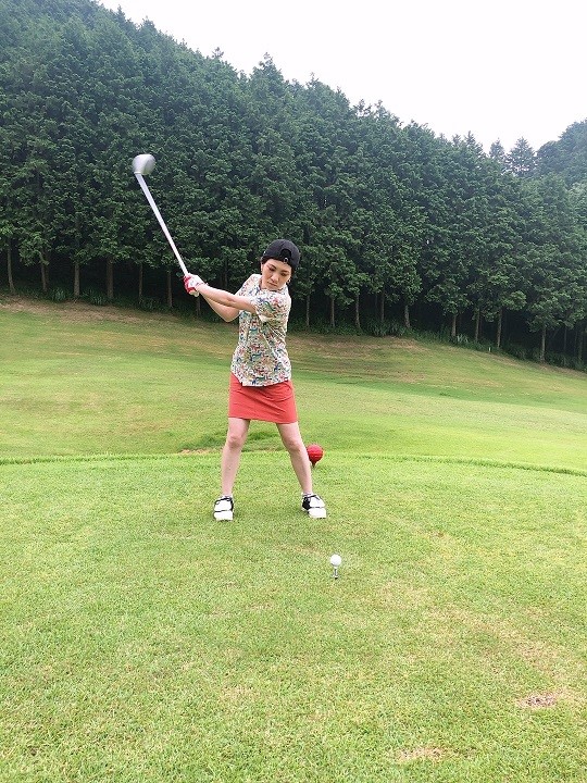 ショップで見ると派手に見えますが、ゴルフ場では芝生のグリーンとスカートのオレンジとのコントラストでとてもお洒落です。