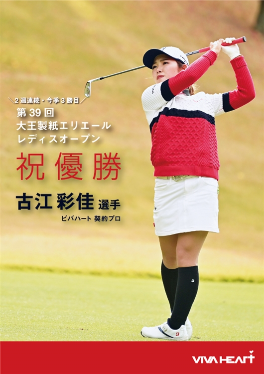 VIVA HEART ウエア契約の古江彩佳プロが、11月19日(木)~11月22日(日)まで開催されました、第39回大王製紙エリエールレディスオープンにて2週連続優勝、今季3勝目を飾りました!