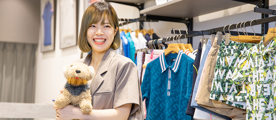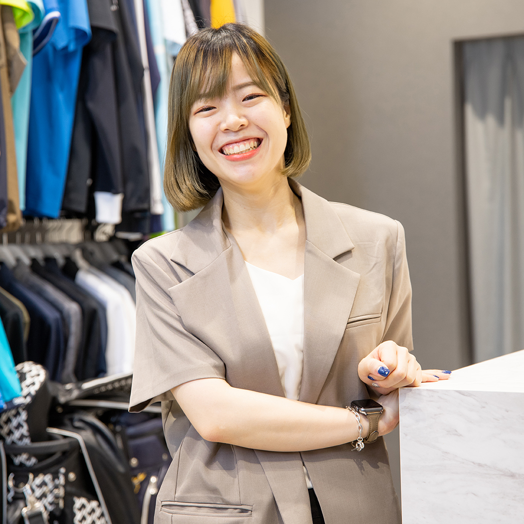 若い女性が多く、皆さんキラキラしていて面白い方が多かったのでここで働きたいと直感で思いました。それは入社してから今でも変わらないです!またファッションにもスポーツにも興味があったのはもちろん、「ゴルフ」といったファッションもスポーツもどちらの色も出していかないといけない特殊な業界に興味を持ち選びました。