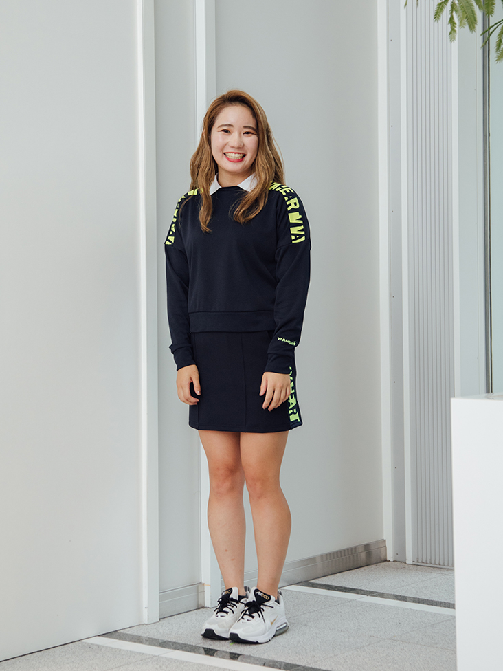 スカートはストレッチ素材で、とても伸びて気持ちいいです◎