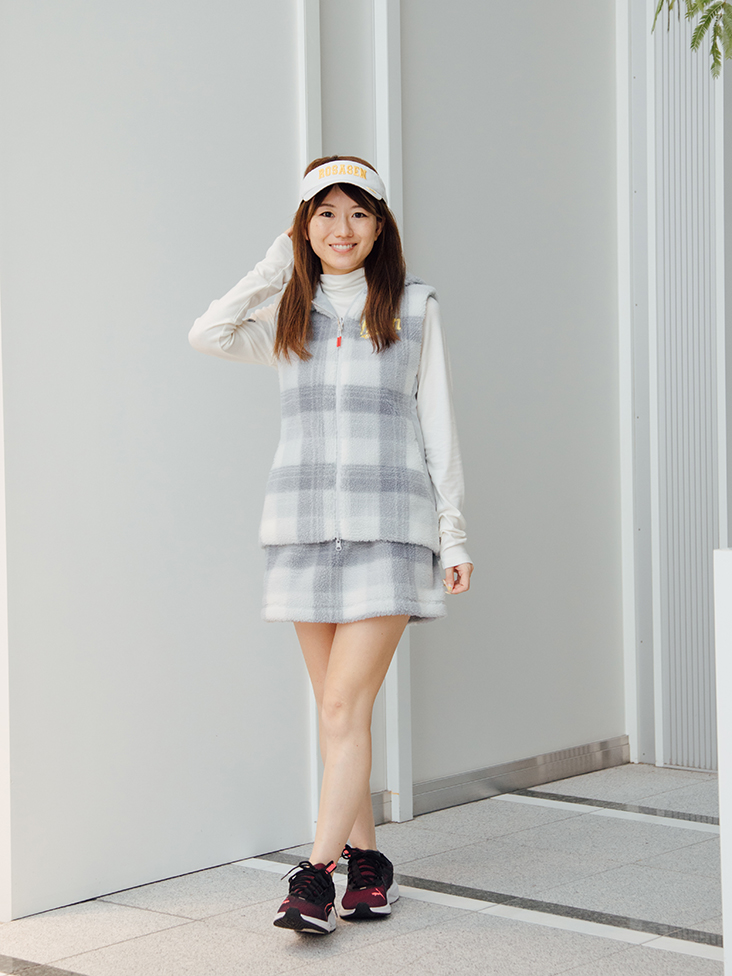 冬のゴルフでも暖かそうな、ボアのセットアップを選びました。