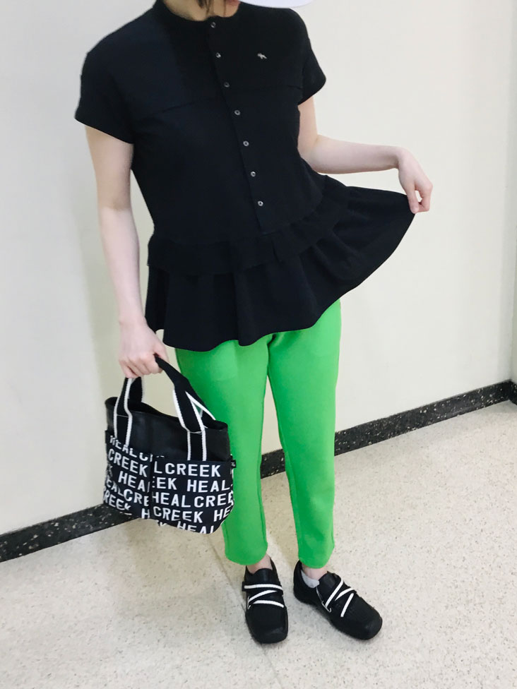 トレンドカラーのGREENに、マストカラーのBLACKを合わせた楽しい1日をより華やかにするOOTD♪