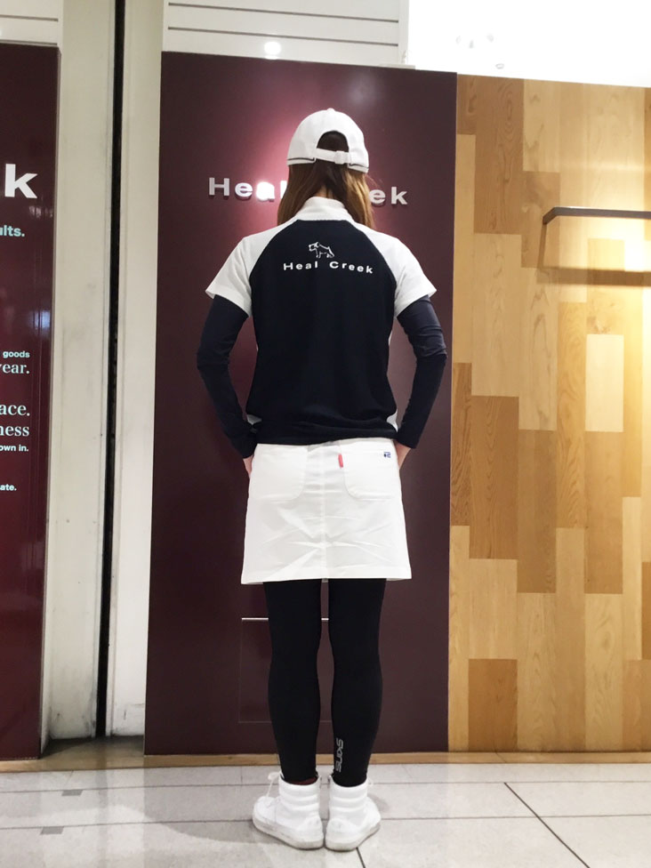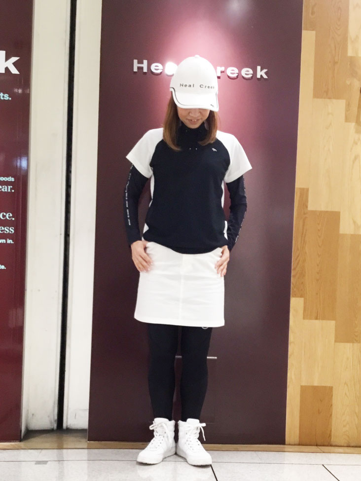 スカート・キャップ・シューズは、ホワイトで爽やかコーデに。