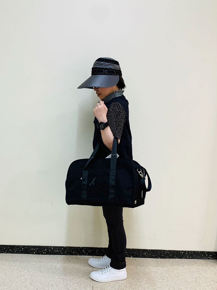 モノトーンカラーを素材の光沢感を活かしておしゃれと活動的さを取り入れたハイセンスコーデ♪