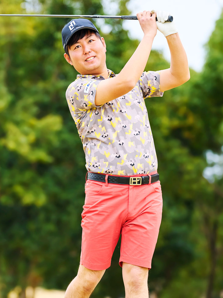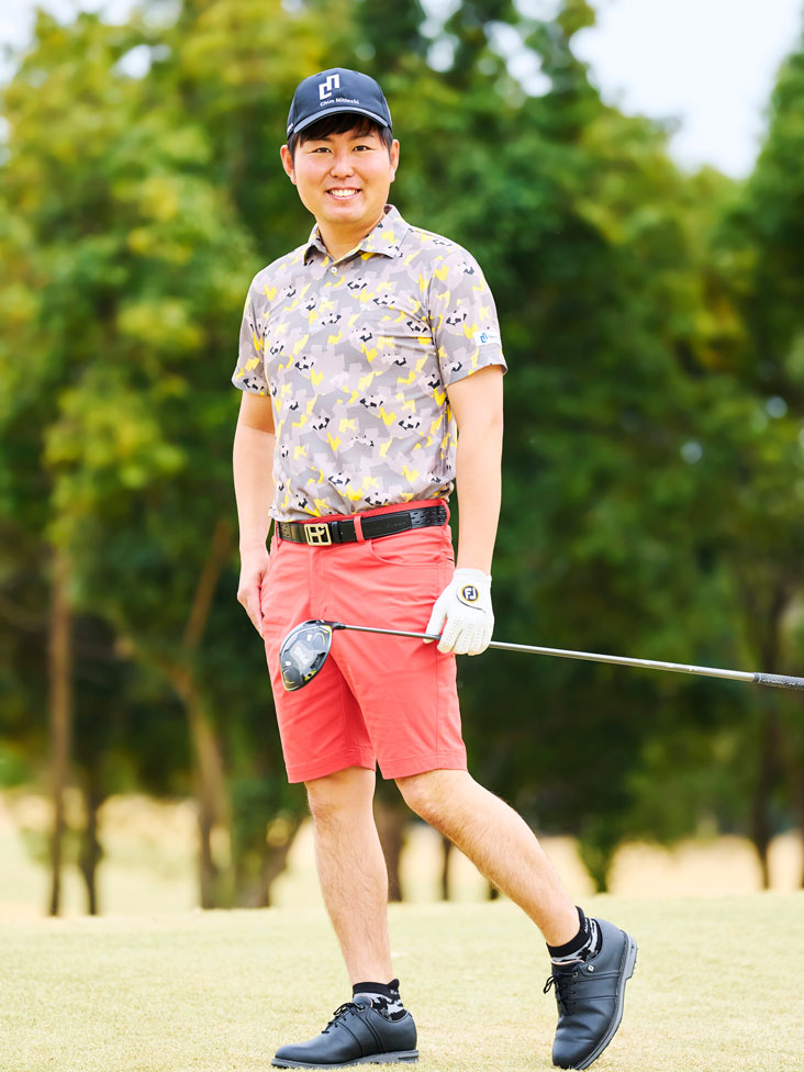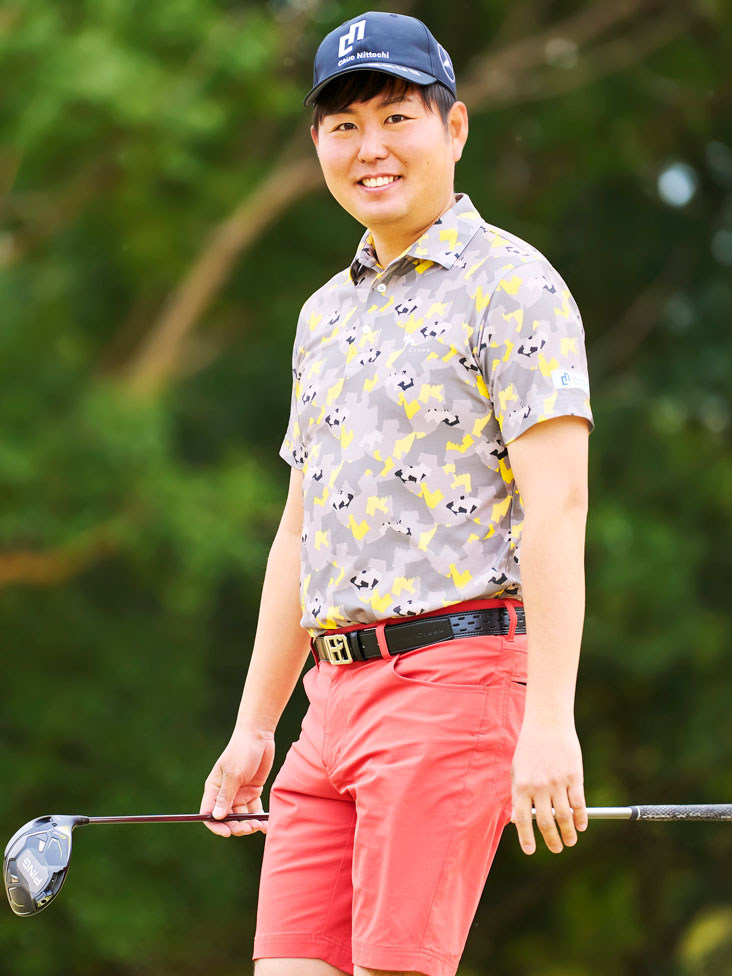 ヘンリー君をカモフラ風にしたプリントシャツは、軽く肌離れがいいので夏のプレーに最適。ブラック・ホワイトはもちろん今回のようにレッドのボトムスでも合わせられる着回しやすいカラーリングです◎