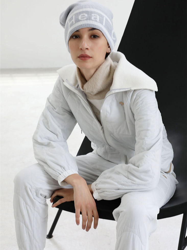 ブルゾンとボトムスはスポーツアウトドア分野でジャケットや寝袋を中心に使われてきた快適保温素材のエコメイド中綿。ボトムは脇に入ったラインは縦長効果でスタイルアップも。足口を絞ったジョガータイプは軽やかな印象でコーディネイトの幅を広げます。軽量でありながら保温性があり、寒冷時のゴルフシーンのマストアイテムになること間違いなし。