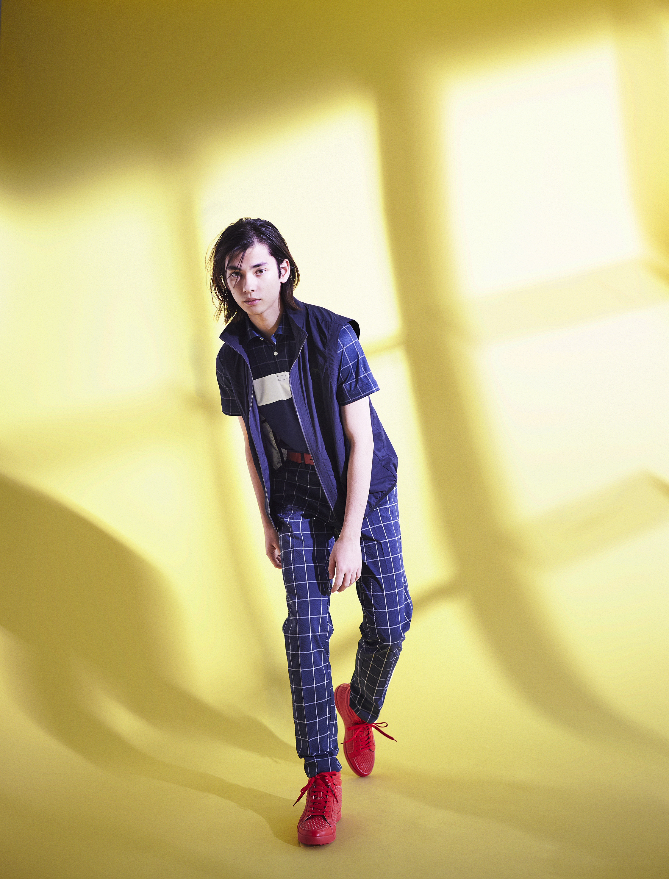 ゴルフウェアですが、気分的にはウィンドウ・ペン柄のスーツやセットアップスタイルをイメージしたスタイリングになります。