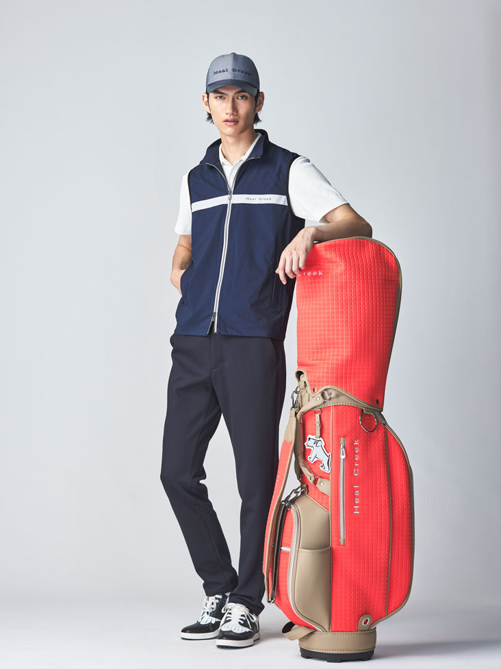 さらに、オレンジのキャデーバッグがアクセントカラーで、遊び心をプラス。お秋の爽やかな風を感じながら、快適にラウンドを楽しむために必須のアイテムと言えるでしょう。