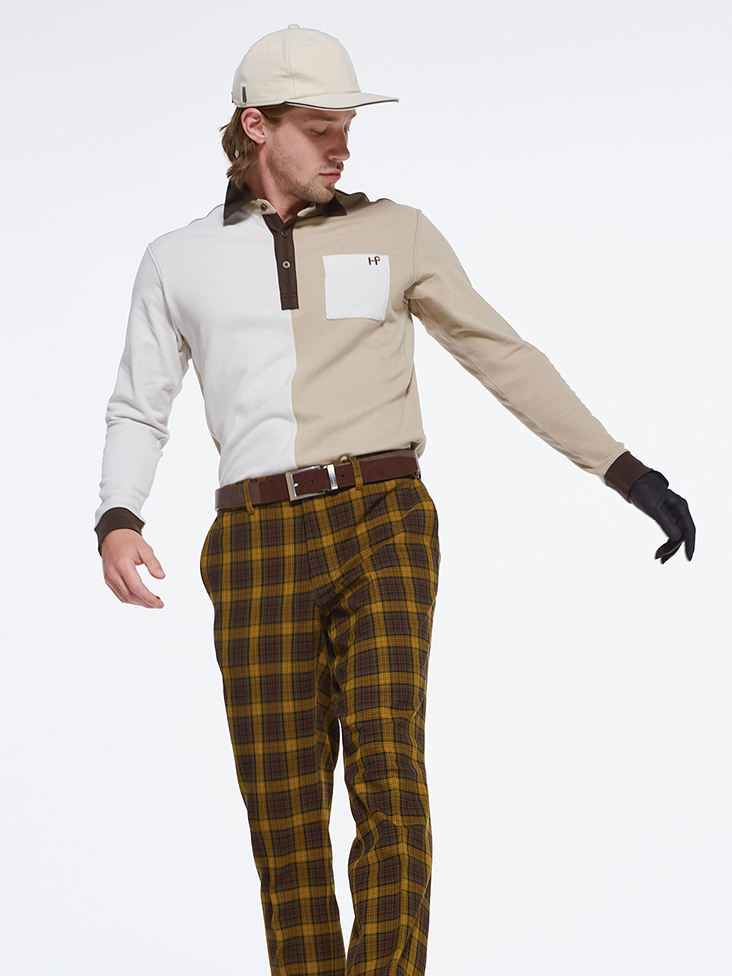 シャツ衿タイプでのウォームシャツ。マルチカラーが特徴でポケットがついて便利。同じ色系でまとめているので着やすい配色です。抜群のストレッチ性と起毛で柔らかく思わず触りたくなる極上の肌触り。保温性があり寒い日の定番ゴルフアイテム。パンツはウエストが8cmも伸びる「マジックウエスト」。はき心地の良さを実感してください。他では得られない驚きがあります。クラシックなチェック柄がブリティッシュゴルフスタイルに最適。