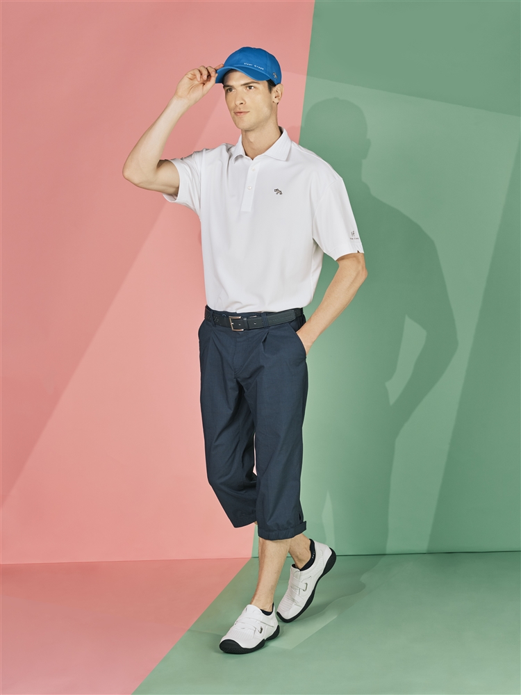 通常のニッカポッカより細身のシルエットのニューニッカポッカ。裾をまくって締めればニッカポッカ、そのままおろして穿くと6分丈パンツ。クラシックなグレンチェック柄。リネン混で快適な肌触りとストレッチ性がある。後ろベルトはゴムシャーリングでしゃがんだ時にも楽ちんです。抗ウィルススレキやボールポケット、グローブホルダーと機能満載なゴルフパンツです。