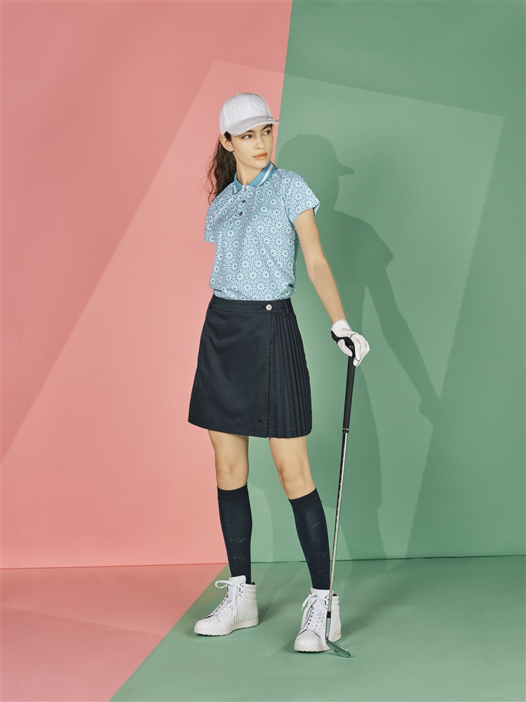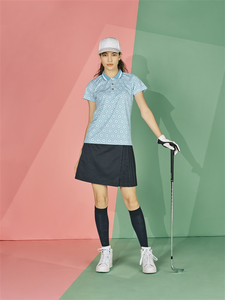 切り絵から着想を得た、HCのマークが取り込まれたオリジナルの幾何学的な総柄プリントを施し今シーズンのテーマを感じさせてくれるスペシャルな一枚のトップスに、落ち着いたカラーのスカートと合わせてチャレンジしやすいスタイリング。